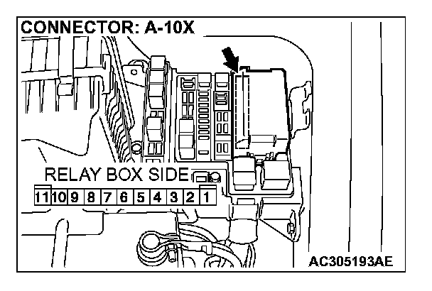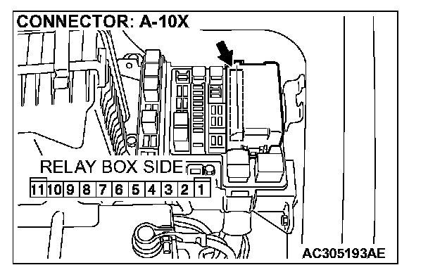STEP 3. Check the front-ECU connector A-10X for loose, corroded or damaged terminals, or terminals pushed back in the connector.