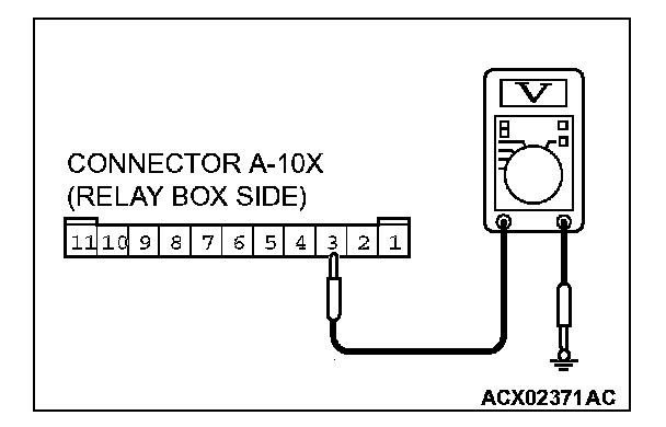 1. Disconnect front-ECU connector A-10X and measure the voltage available at the relay box side of the connector.