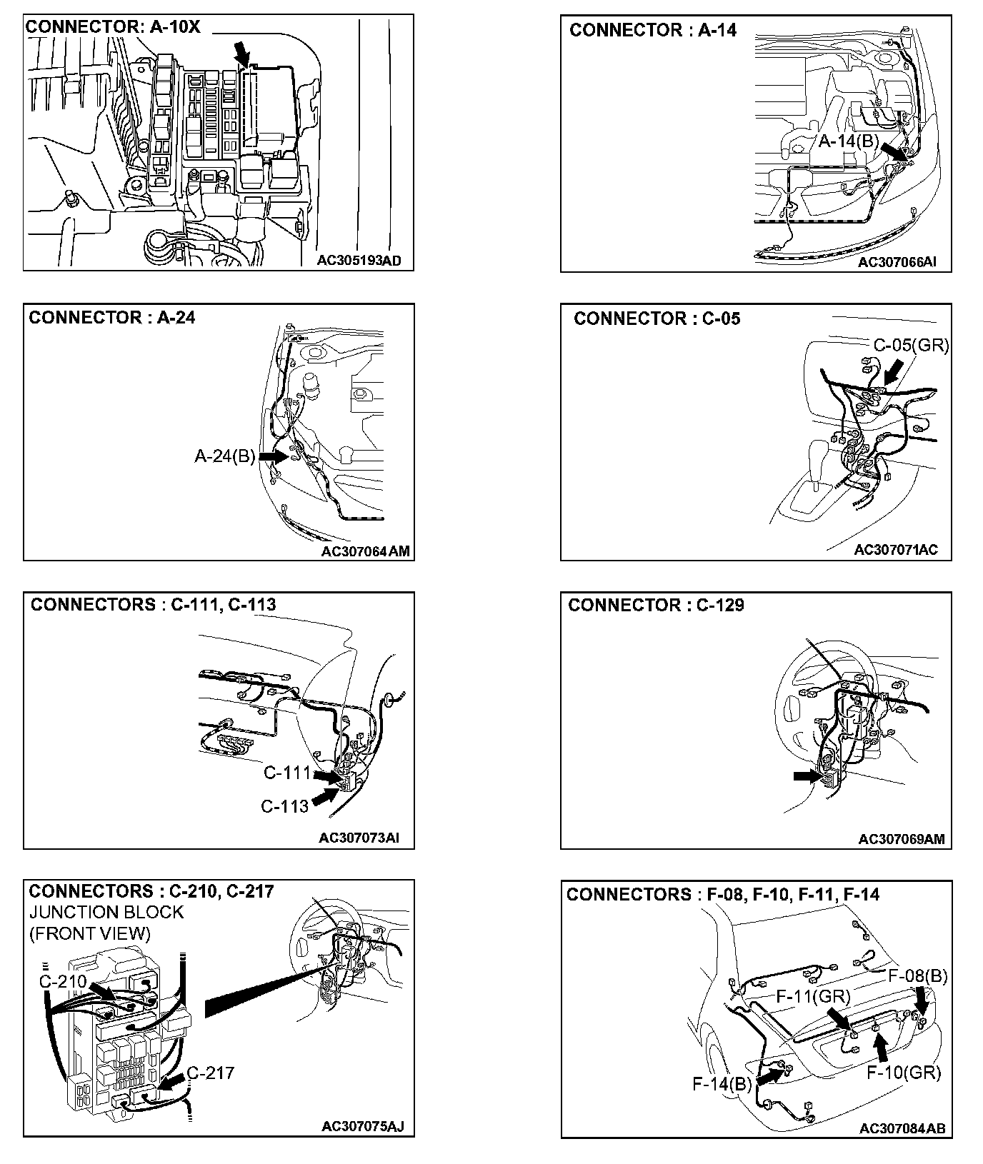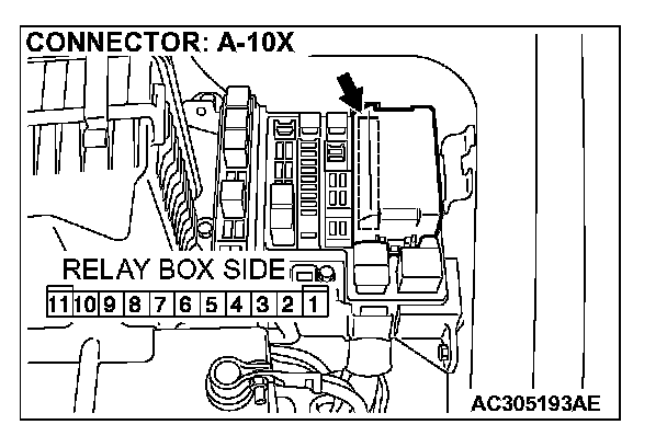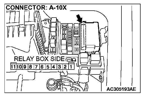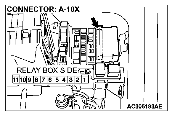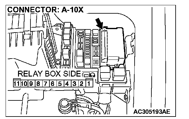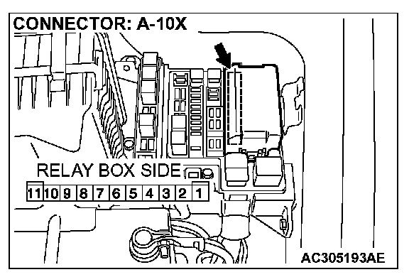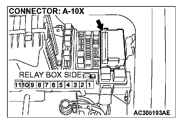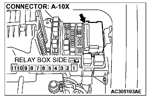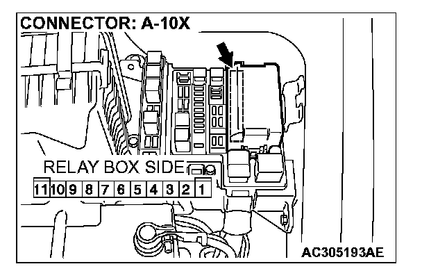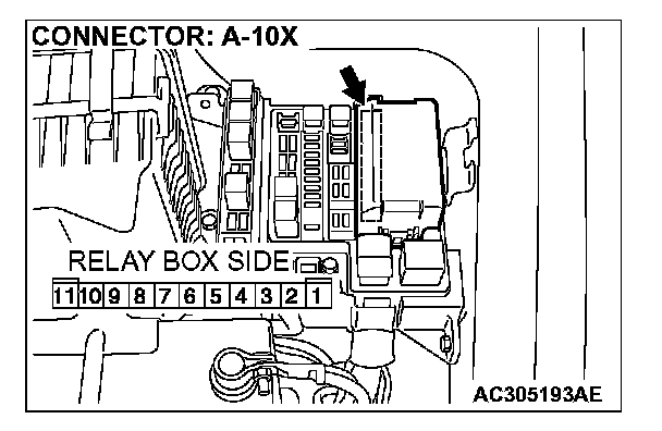 STEP 10. Check front-ECU connector A-10X for loose, corroded or damaged terminals, or terminals pushed back in the connector.