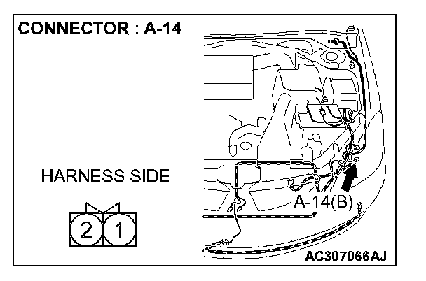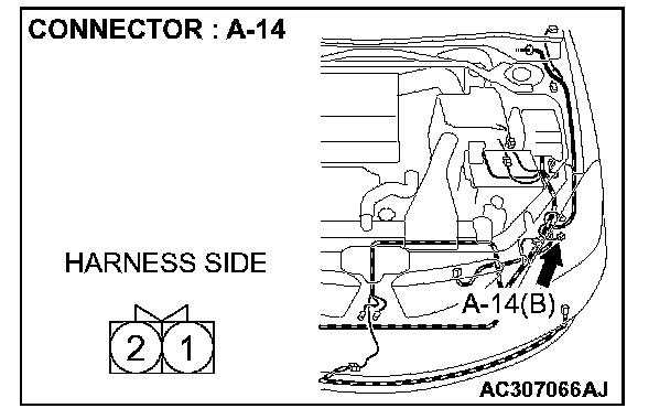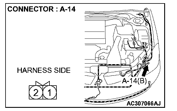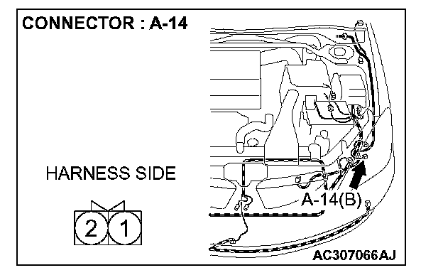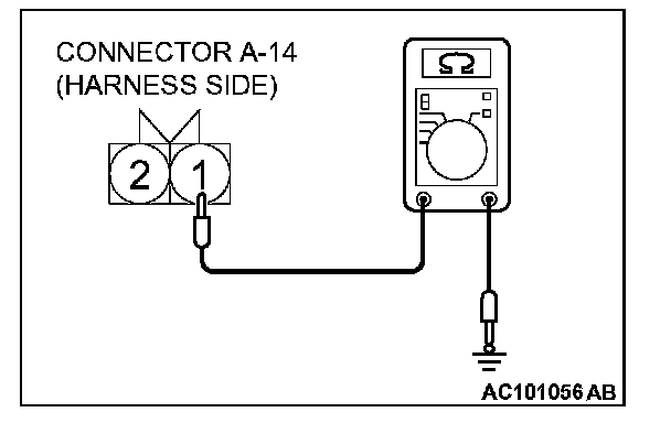 STEP 9. Check the wiring harness between position light (LH) connector A-14 (terminal 1) and ground.
