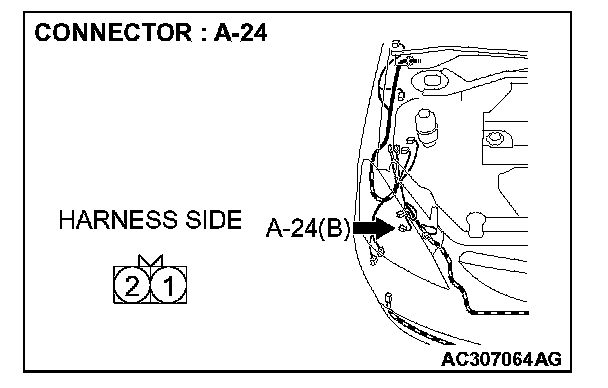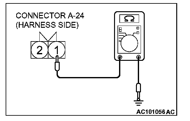 1. Disconnect position light (LH) connector A-24 and measure the resistance available at the wiring harness side of the connector.