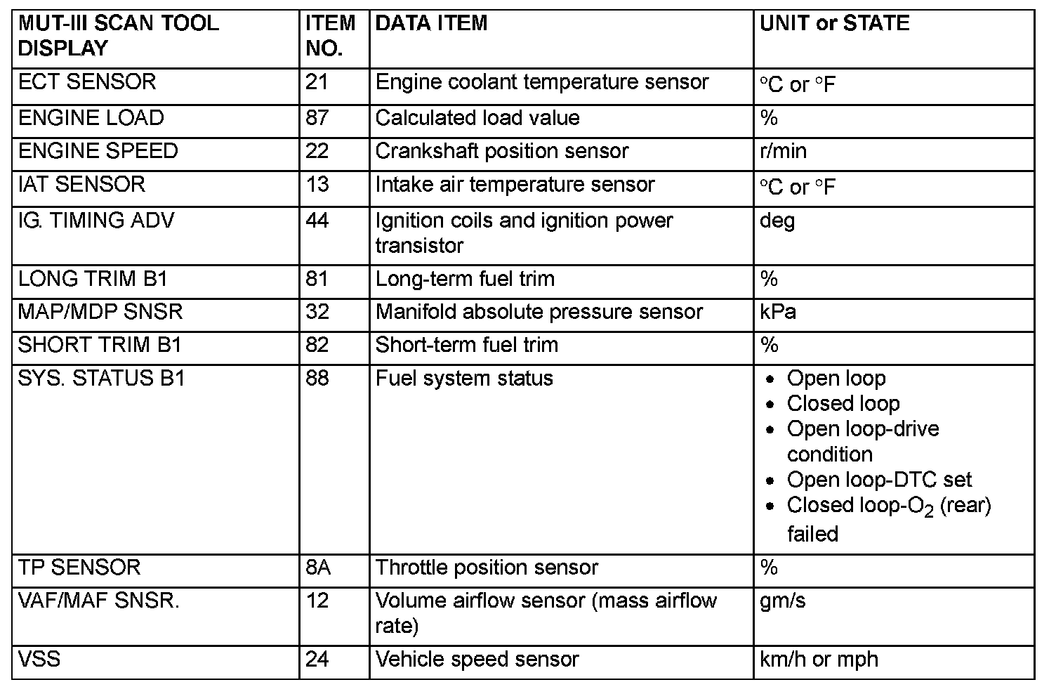 NOTE: As for Diagnostic trouble code P1603, "freeze frame" data is not memorized.