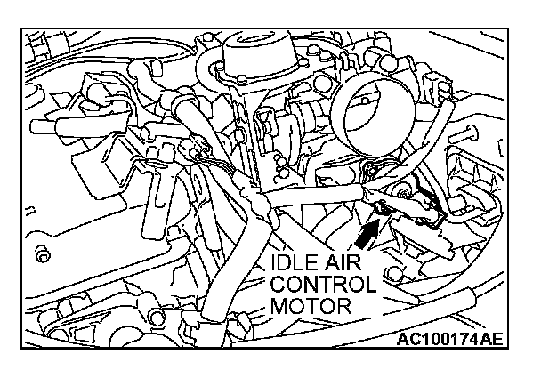 2. Check that the operation sound of the IAC motor can be heard after the ignition is switched to the "ON" position (but without starting the engine).