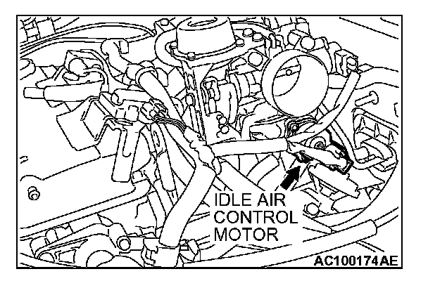 2. Check that the operation sound of the IAC motor can be heard after the ignition is switched to the "ON" position (but without starting the engine).