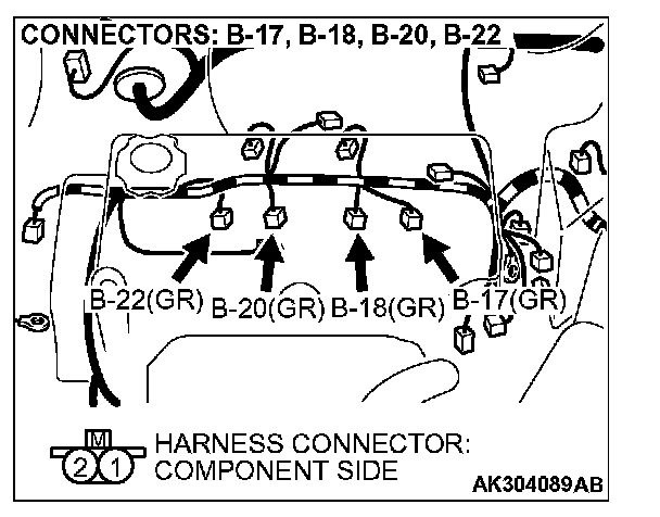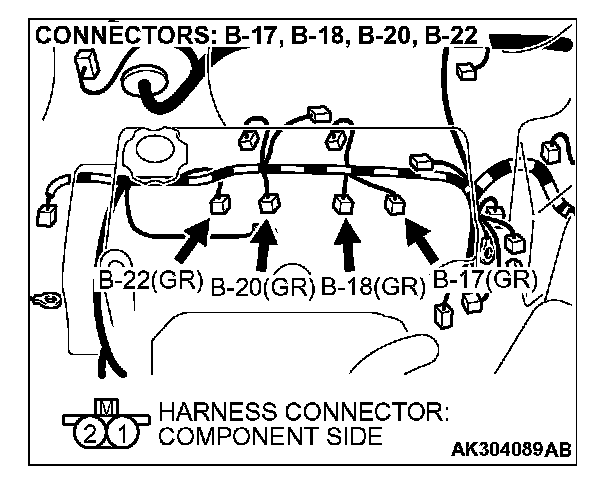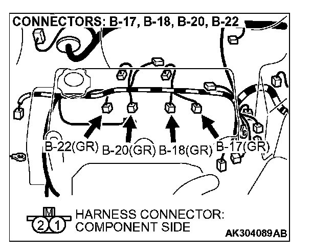 STEP 6. Check harness connectors B-22, B-20, B-18 and B-17 at injector for damage.