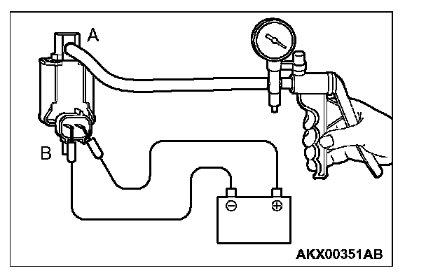 4. As described in the chart, check airtightness by applying a vacuum with voltage applied directly from the battery to the EGR vacuum regulator solenoid valve and without applying voltage.
