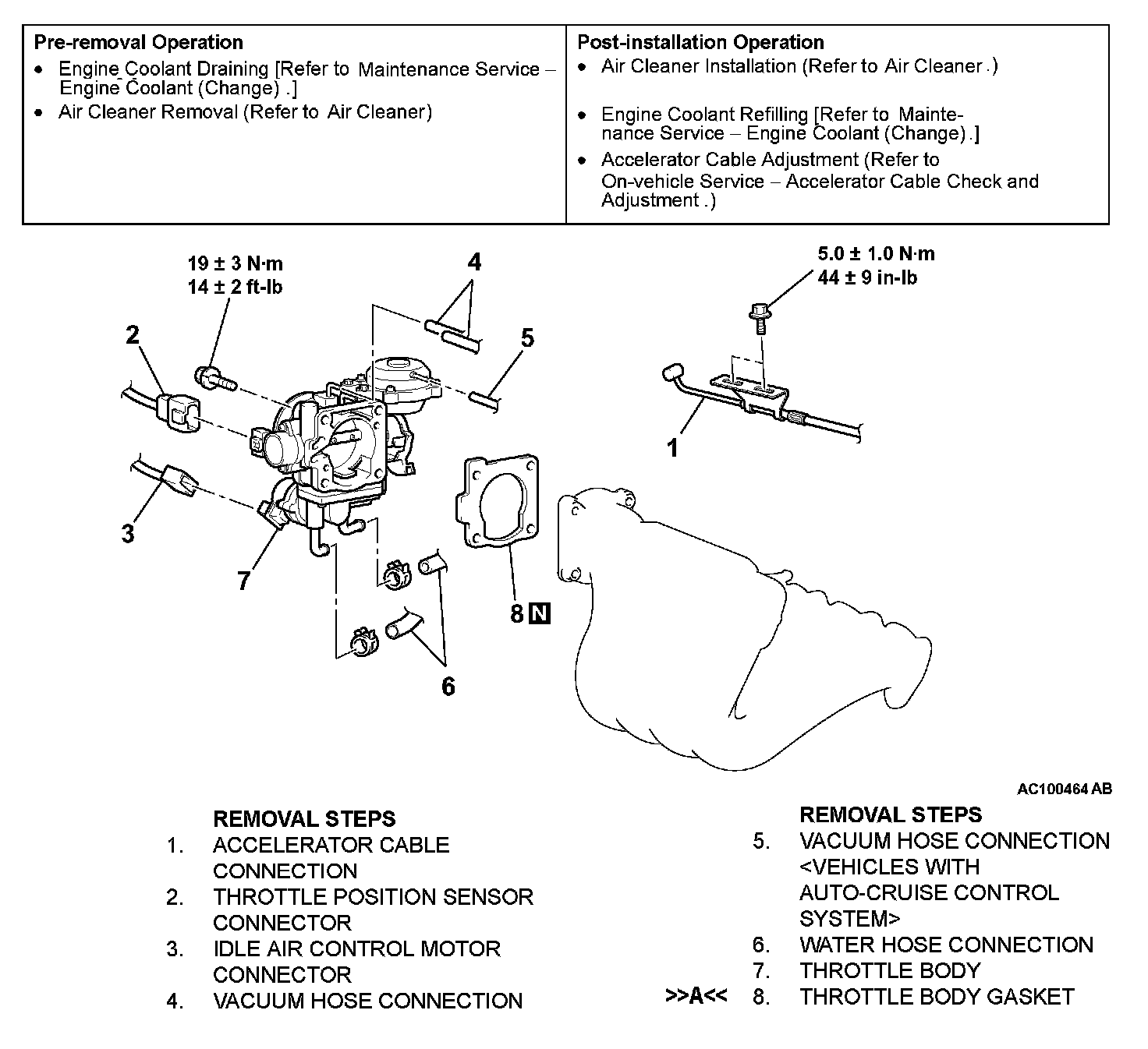 THROTTLE BODY ASSEMBLYREMOVAL AND INSTALLATION