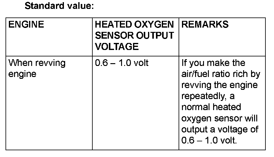 3. If the output voltage is not within the standard value, replace the heated oxygen sensor.