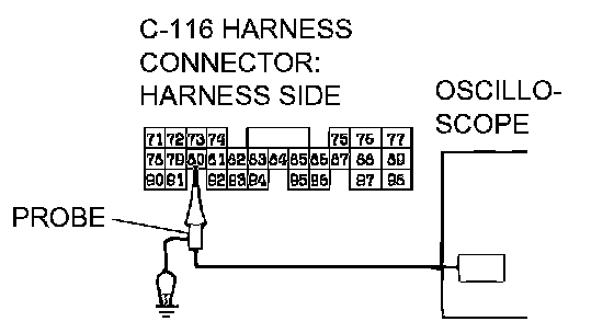 2. Connect an oscilloscope probe to PCM connector C-116 terminal 80 by backprobing.