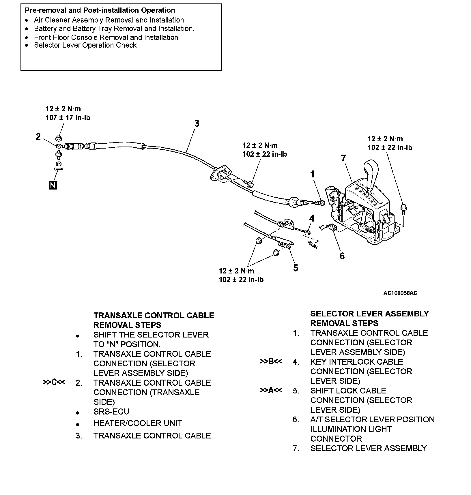 >>A<< SHIFT LOCK CABLE (SELECTOR LEVER SIDE) INSTALLATION