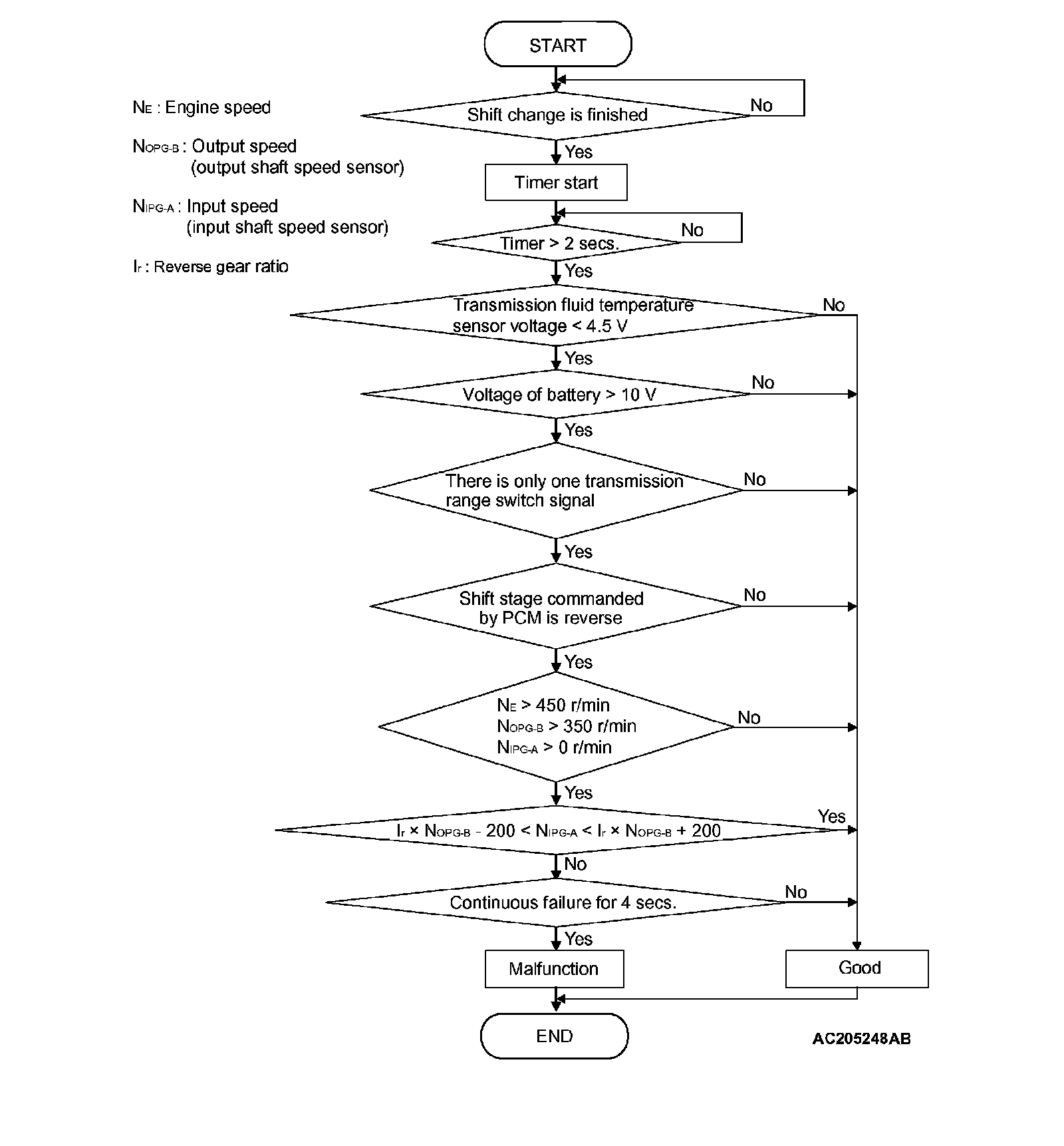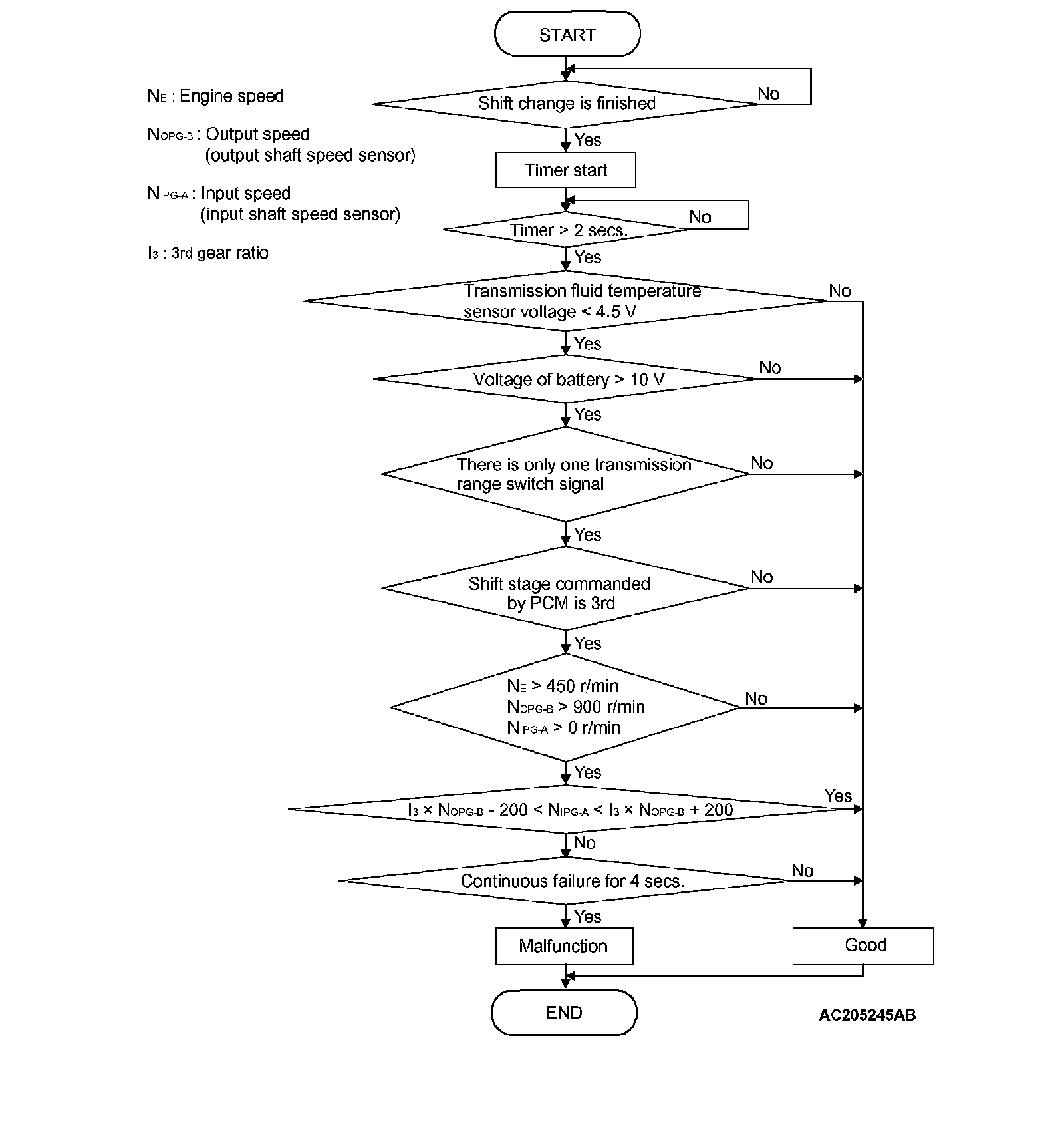^ In 4th gear, if a difference between turbine revolution and that value calculated from output revolution equals or exceeds specified value, PCM judges that step-out in 4th gear has occurred.
