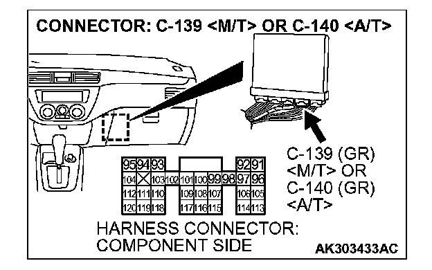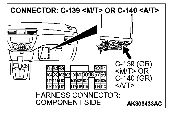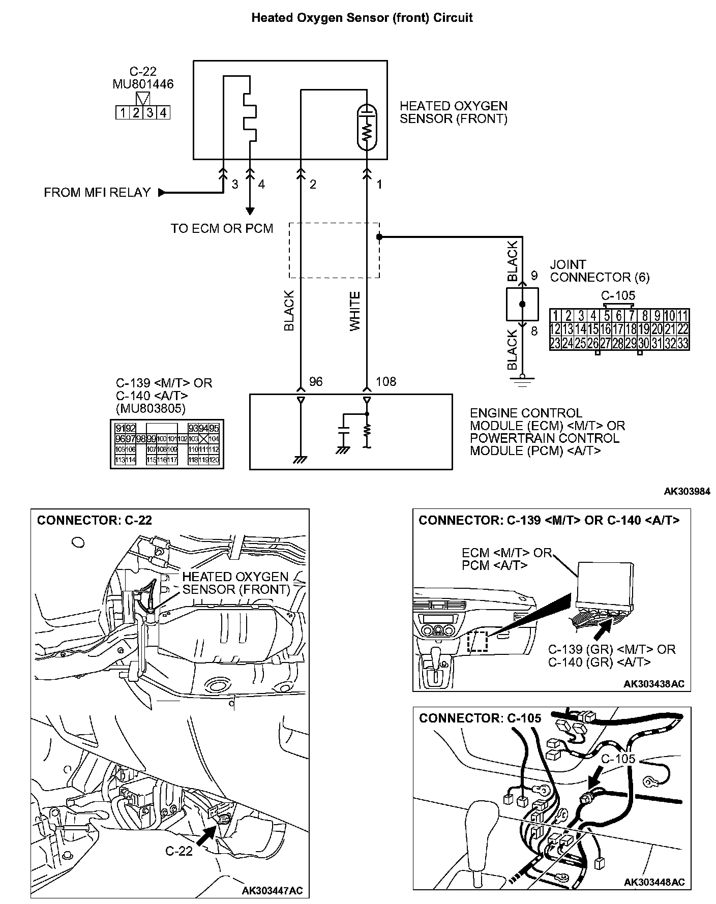 STEP 1. Check harness connector C-22 at heated oxygen sensor (front) and harness connector C-139 at ECM