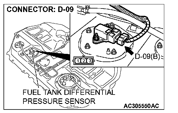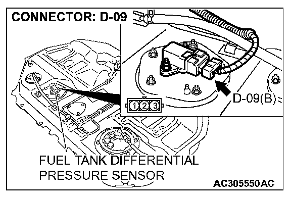 STEP 19. Measure the 5-volt reference signal at fuel tank differential pressure sensor connector D-09.