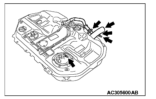 2. Plug the filler hose, fuel pump feed nipple, hose I, hose M and hose R connected to the fuel tank.