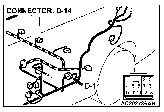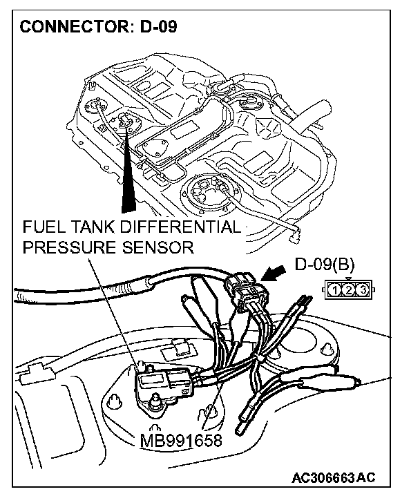 4. Connect special tool MB991658 to both halves of connector D-09.