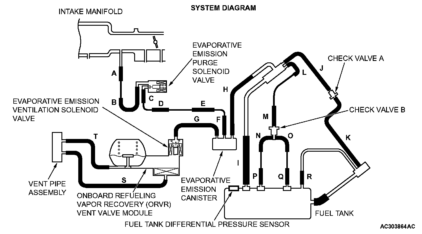 - When the evaporative emission purge solenoid valve is fully operational (100 percent ratio), the fuel differential pressure sensor output voltage remains at 4.0 volts or greater for ten seconds.