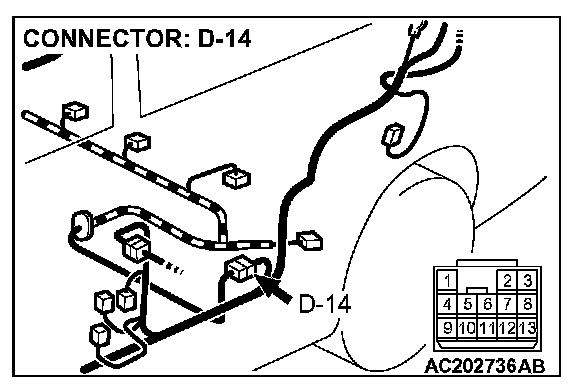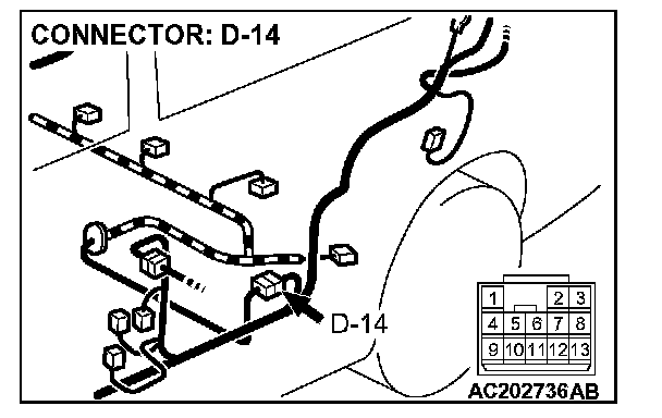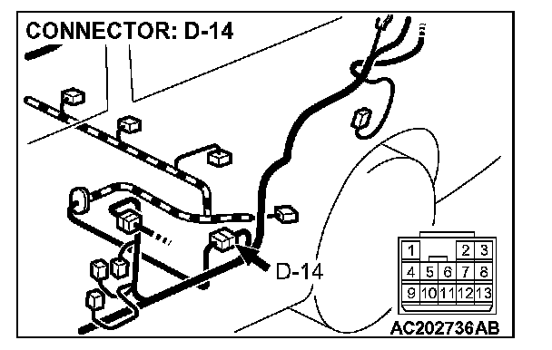 STEP 2. Measure the signal voltage at intermediate connector D-14 by backprobing.