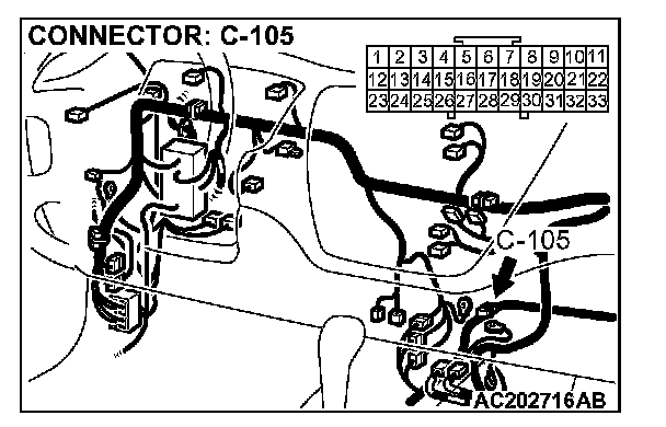 6. Measure the voltage between connector D-09 terminal 2 and ground.