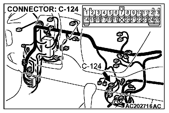 4. Connect special tool MB991658 to both halves of connector D-09.