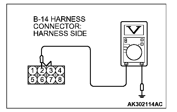 STEP 1. Measure the voltage at generator intermediate connector B-14 by backprobing.