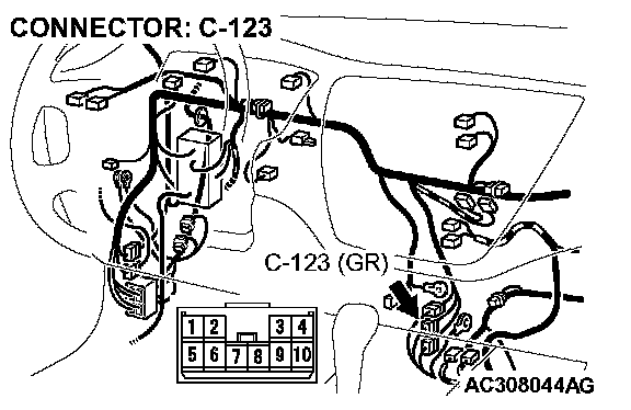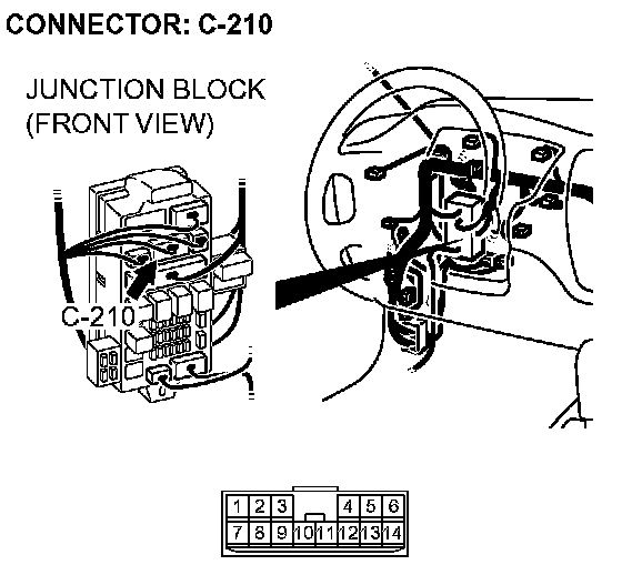 STEP 3. Check intermediate connector C-123 and junction block connector C-210 for loose, corroded or damaged terminals, or terminals pushed back in the connector.