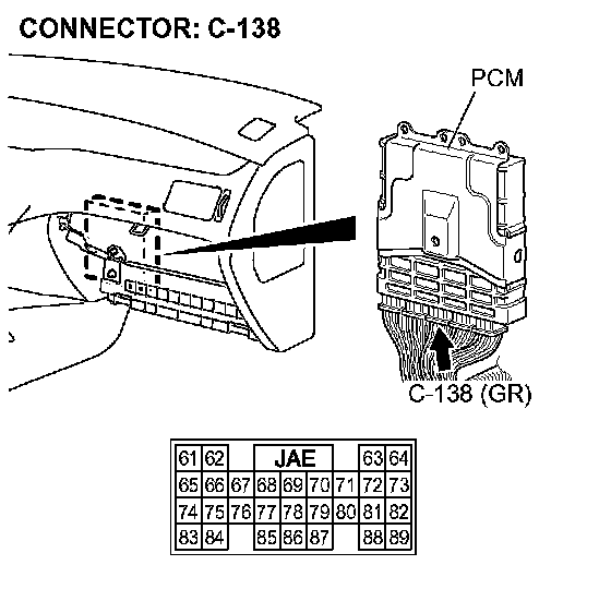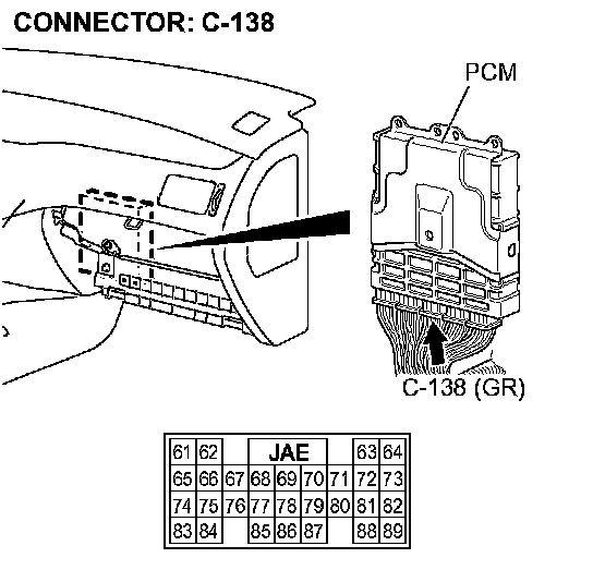 STEP 15. Check PCM connector C-138 for loose, corroded or damaged terminals, or terminals pushed back in the connector.