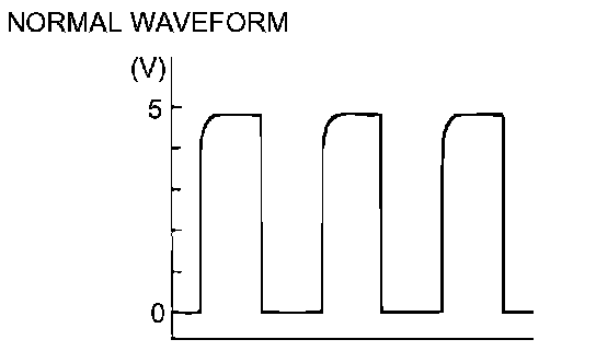 ^ The output shaft speed sensor waveform should show a pattern similar to the illustration. The maximum value should be 4.8 volts or more and the minimum value 0.8 volt or less. The output waveform should not contain electrical noise.