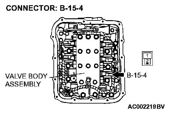 STEP 5. Measure the solenoid valve resistance at the torque converter clutch solenoid valve assembly inside the transaxle.