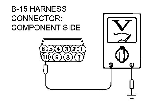 3. Measure the voltage between harness connector B-15 terminal 10 and ground.