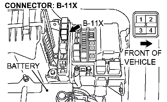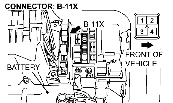 STEP 10. Check the harness for an open circuit or short circuit to ground between A/T control relay connector B-11X terminal 4 in the engine component relay box and A/T control solenoid valve assembly connector B-15 terminal 10.