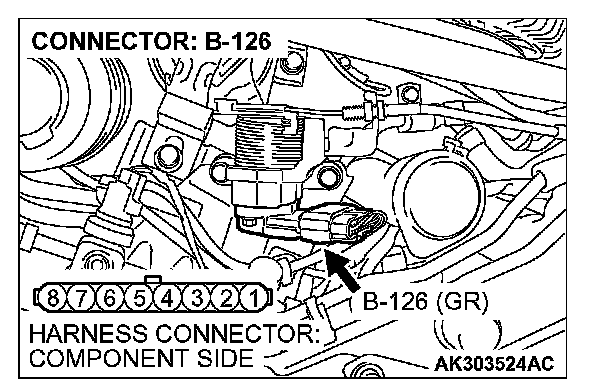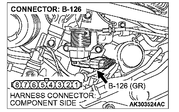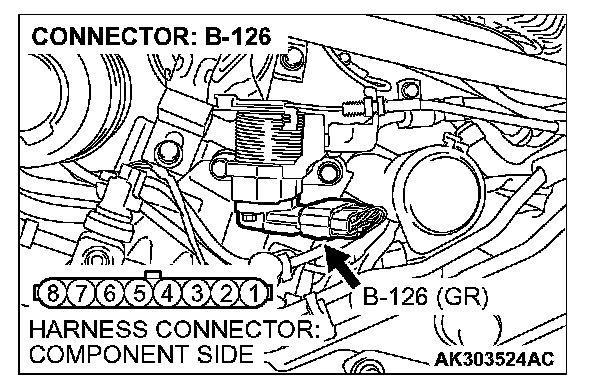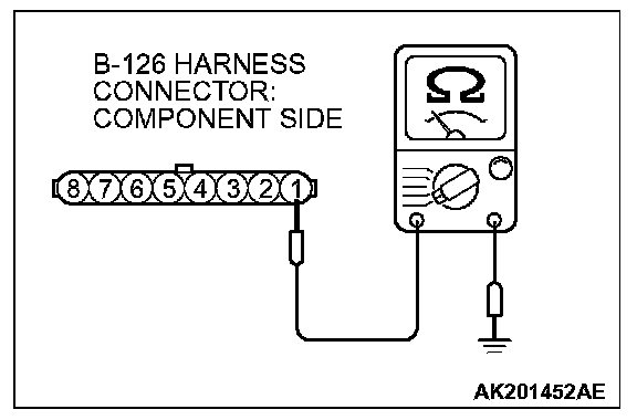 1. Disconnect the connector B-126 and measure at the harness side.