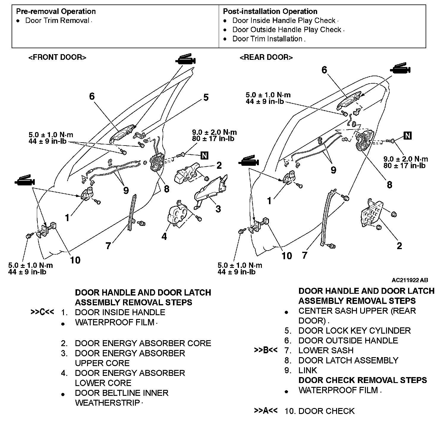 DOOR HANDLE AND LATCHRemoval And Installation: