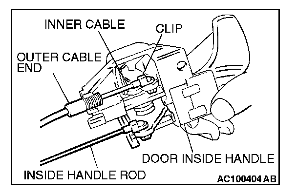 1. Install the inner cable end in the inside lock cable to the clip in the door inside handle.