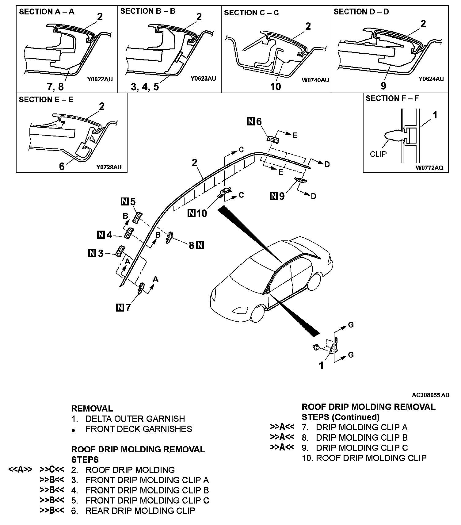 ]]A[[ DRIP MOLDING CLIP C/DRIP MOLDING CLIP B/DRIP MOLDING CLIP A INSTALLATION