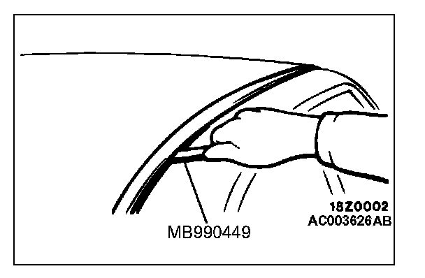 Use special tool MB990449 to pry out the molding.