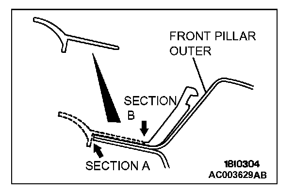 2. After installing the clip to the front pillar outer in alignment with its section a, cut from section B.