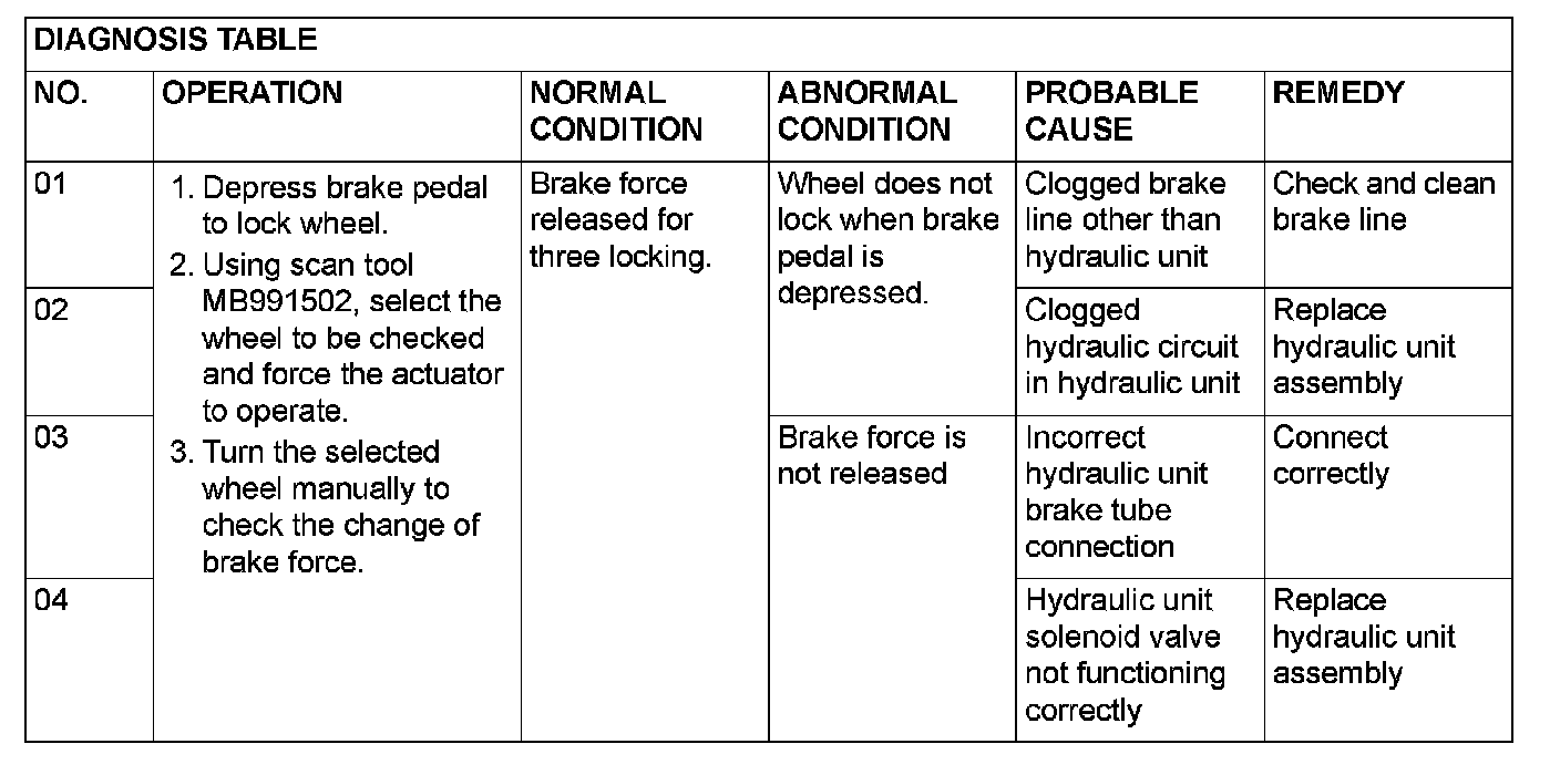 NOTE: When the ABS has been interrupted by the fail-safe function, scan tool MB991958 actuator testing cannot be used.