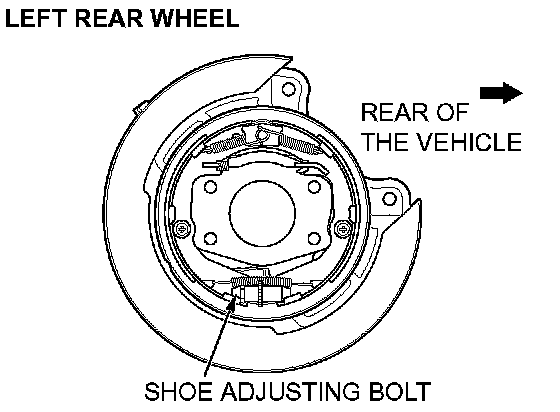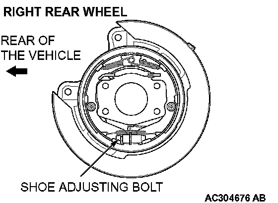 Install the shoe slack adjuster so that the shoe adjusting bolt for the left rear wheel is attached towards the front of the vehicle, and the shoe adjusting bolt for the right rear wheel is towards the rear of the vehicle.