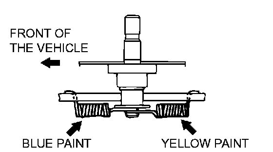 The shoe return springs are not interchangeable as their constants are different. The one with blue paint mark should be install at the front of the vehicle, and the other with yellow paint at the rear of the vehicle, respectively.