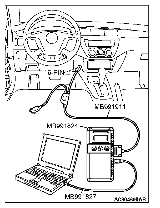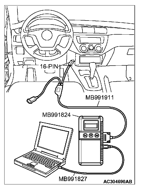 3. Connect special tool MB991827 to special tool MB991824 and the personal computer.