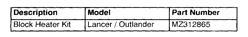 Installation procedures provided with the engine block heater show an incorrect location. This bulletin contains the corrected block heater installation location for block heater kit p/n MZ312865.