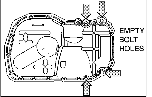 There are four empty bolt holes at the oil pan. This is the intended design. Bolts should not be installed in these locations.