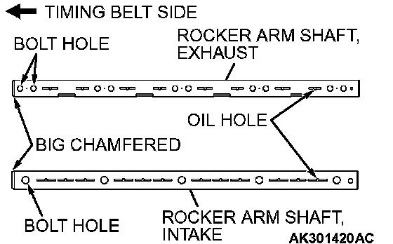 3. Install the rocker arm shaft with oil hole to the lower (cylinder head) side.