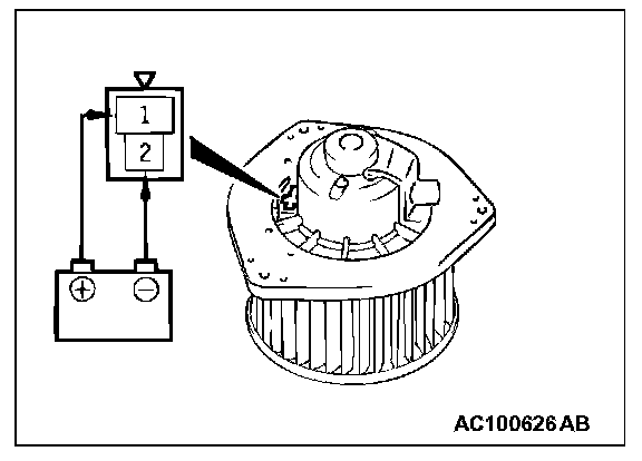 When battery voltage is applied between the terminals, check that the motor operates. Also, check that there is no abnormal noise.