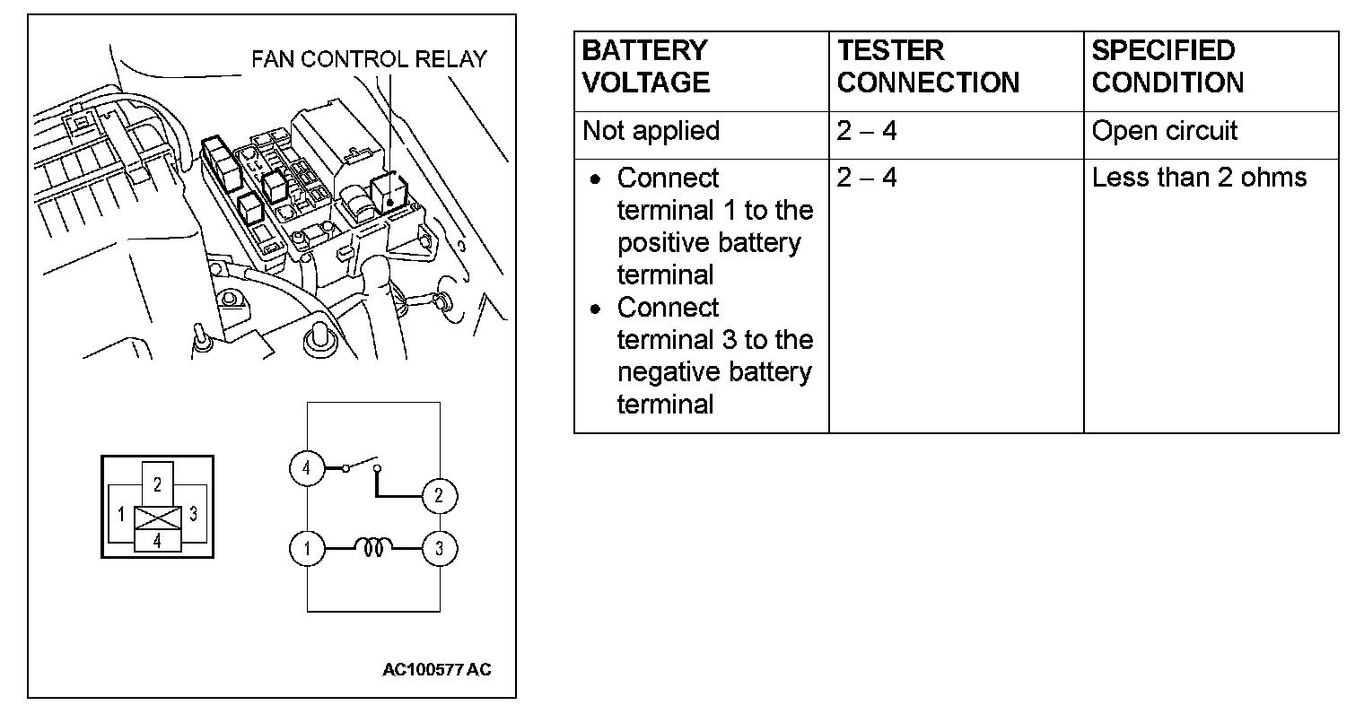 Fan Control Relay Continuity Check: