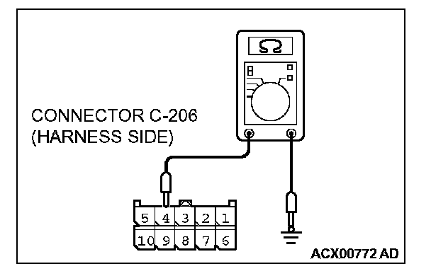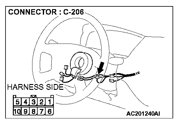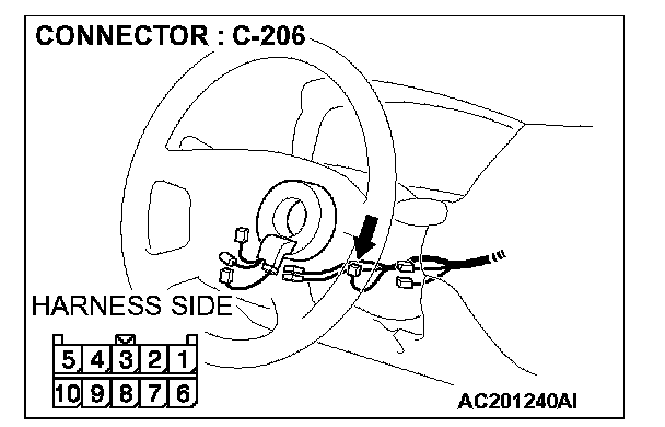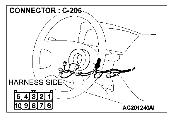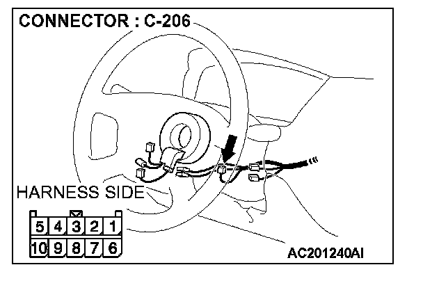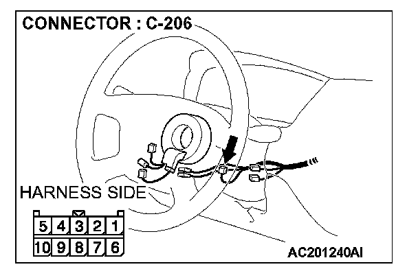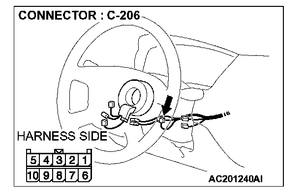 1. Disconnect column switch connector C-206 and measure the resistance available at the harness side of the connector.