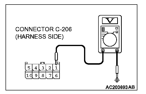 1. Column switch connector C-206 and measure the voltage available at the wiring harness side of the connector.