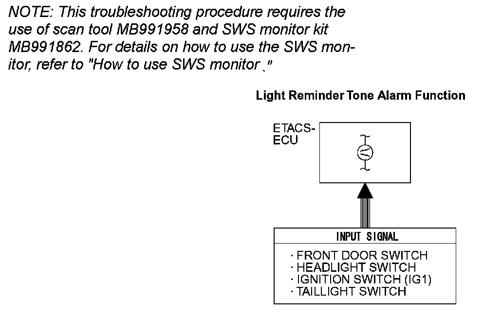 The ETACS-ECU operates the light reminder tone alarm function intermittently according to the following signals: