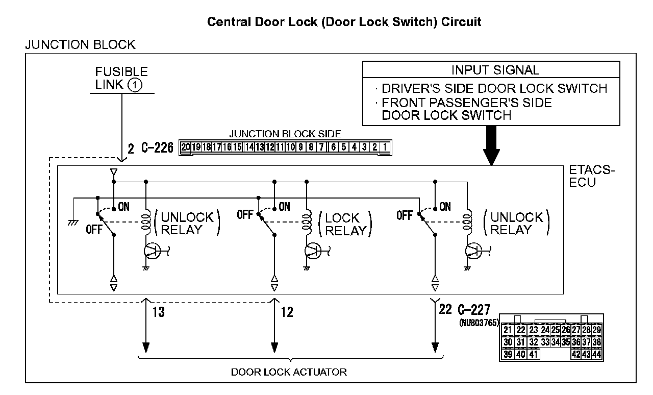 Central Door Locking System: All the doors do not lock or unlock with just the door lock switch operation.Central Door Lock (Door Lock Switch) Circuit: