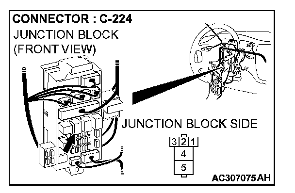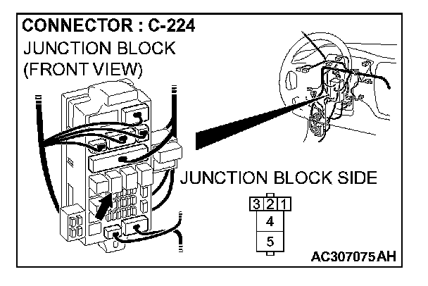 STEP 18. Check power window relay connector C-224 for loose, corroded or damaged terminals, or terminals pushed back in the connector.